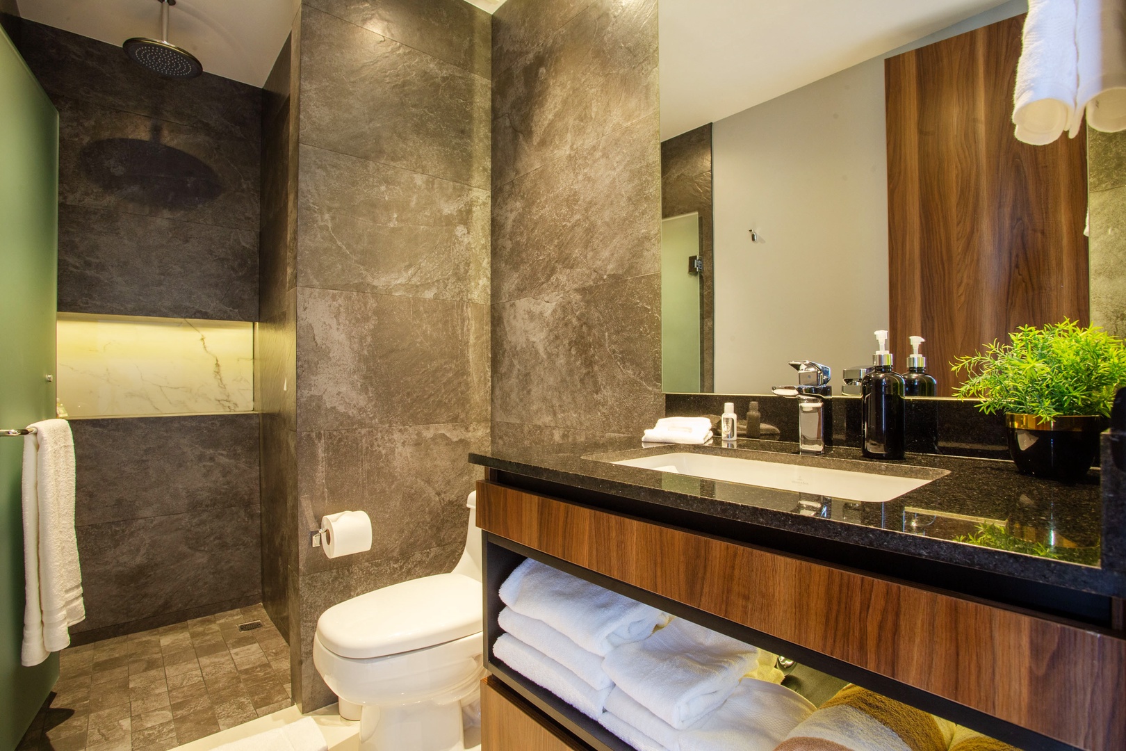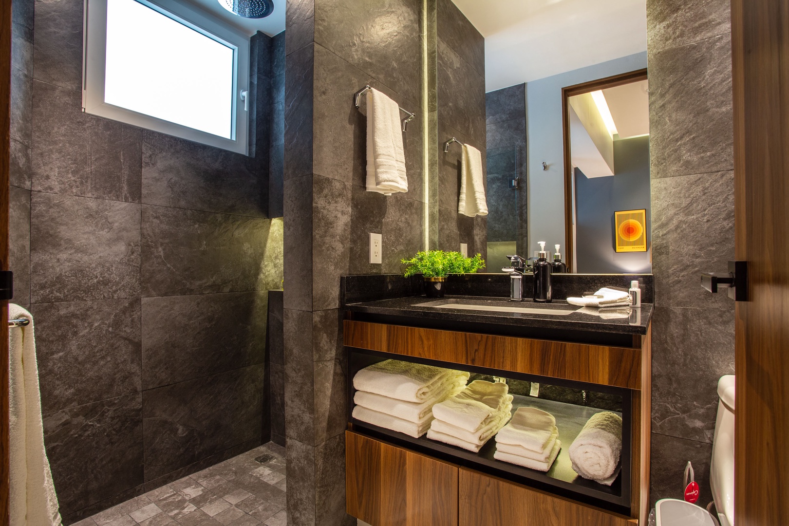 This condo has 2 full bathrooms, both with bright lighting, elegant finishes, and ample storage to store quality bath and beach towels.