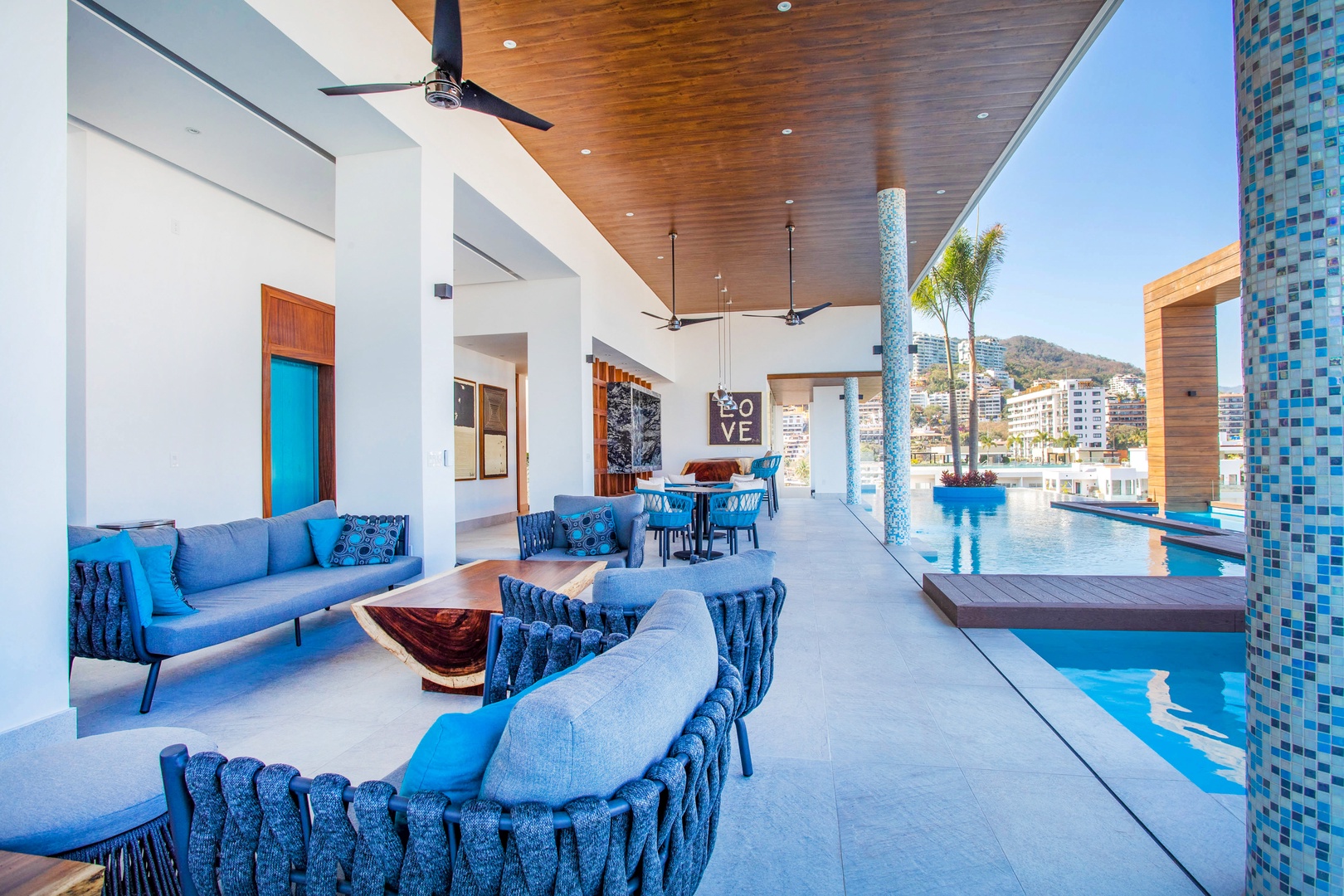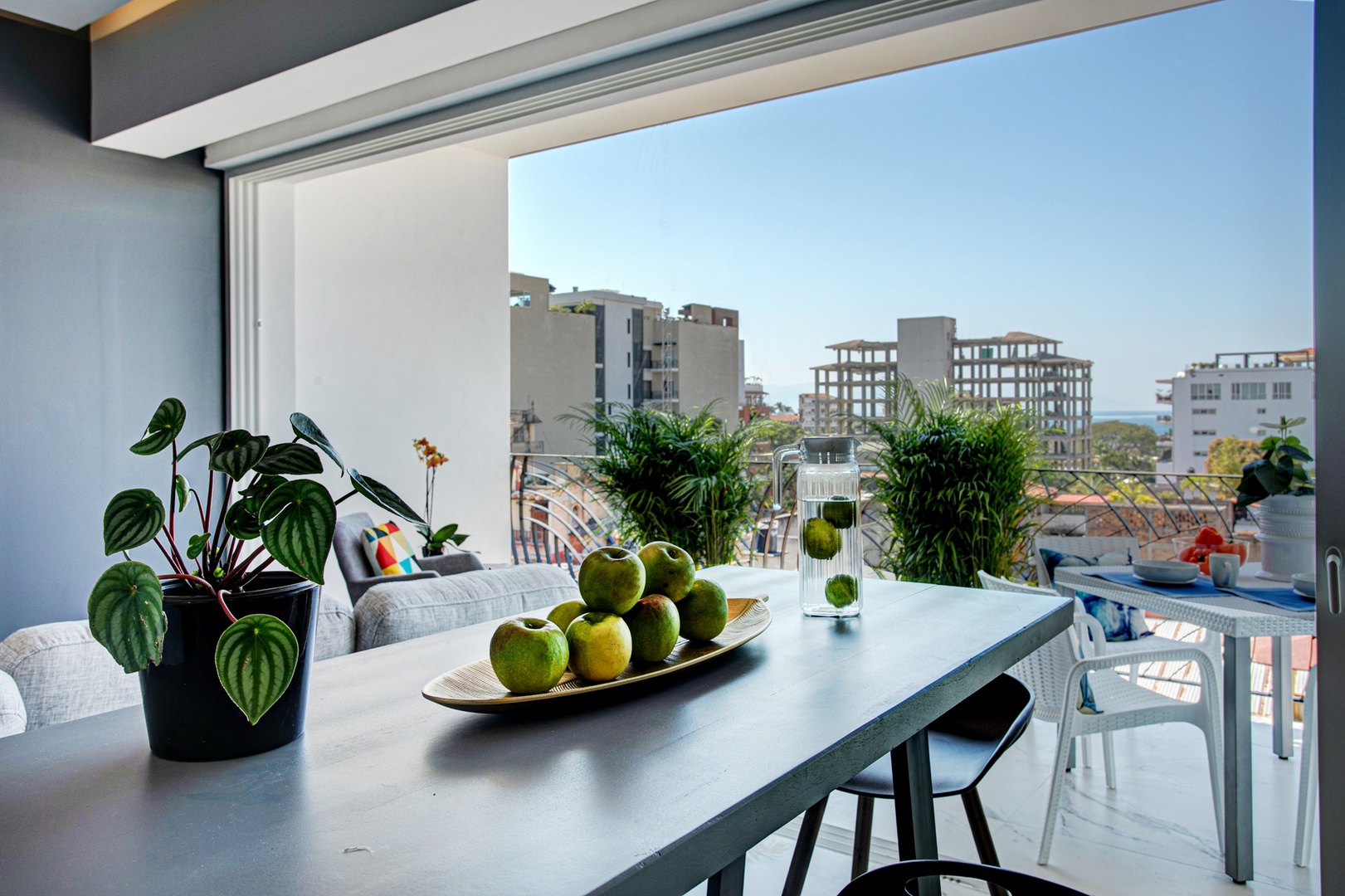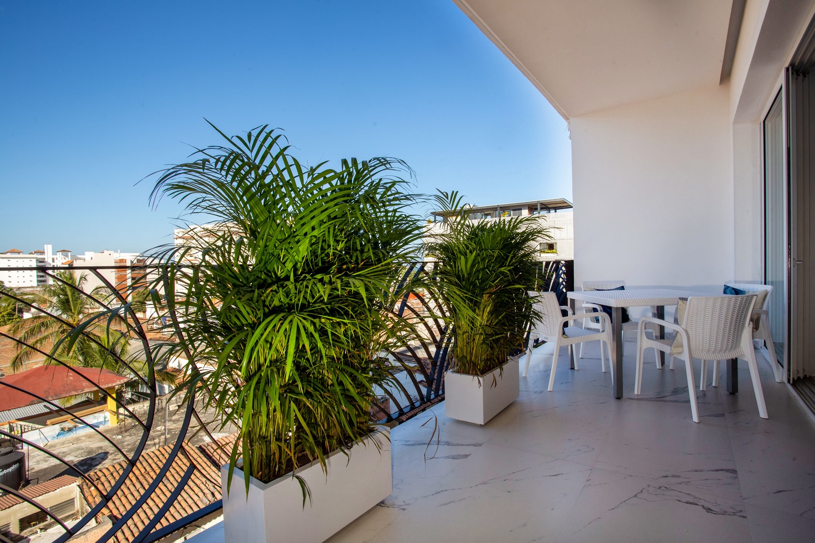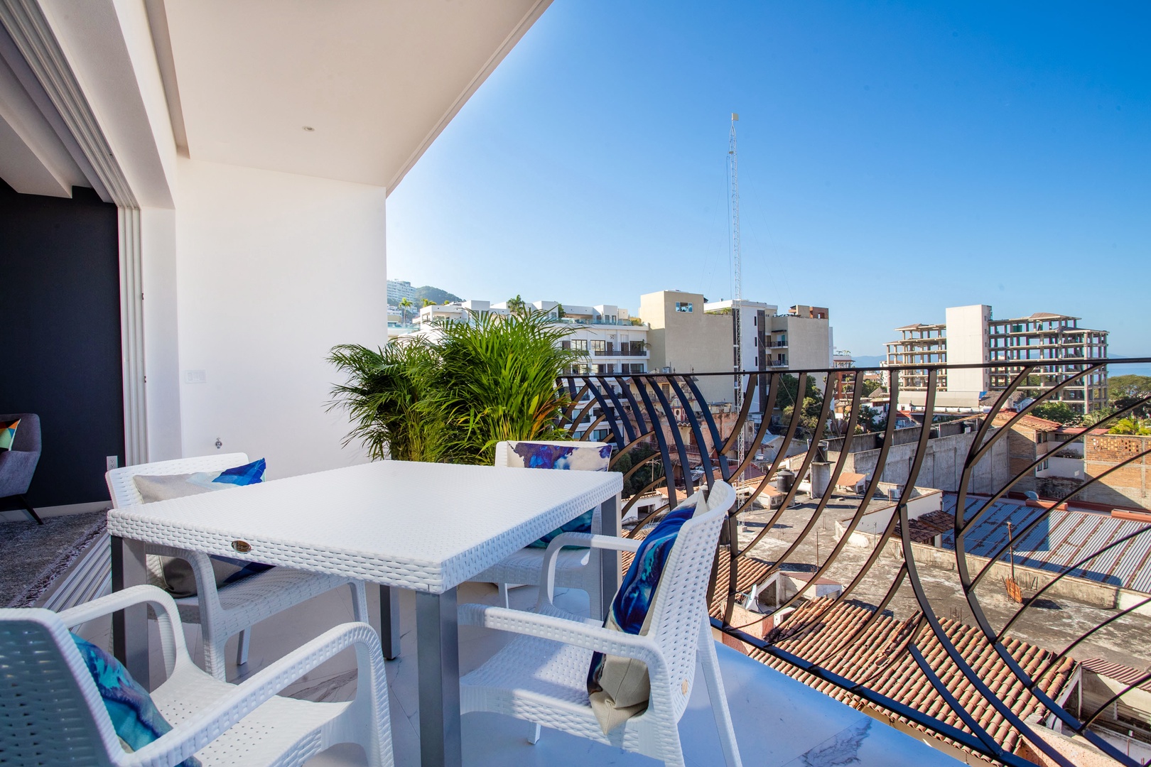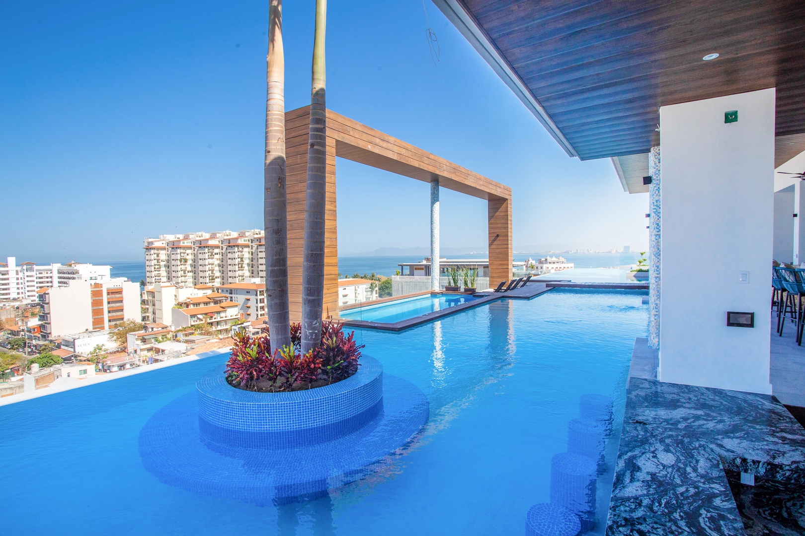 The common area rooftop provides a sparkling infinity pool, heated year-round—a rare find among Puerto Vallarta condos—along with a relaxing jacuzzi, multiple lounge and seating areas, and gorgeous views of Puerto Vallarta's Old Town. The building features a purification water system throughout all condominium units and common areas, ensuring clean and safe water. Additionally, there is an elevator for convenient access to the rooftop.
