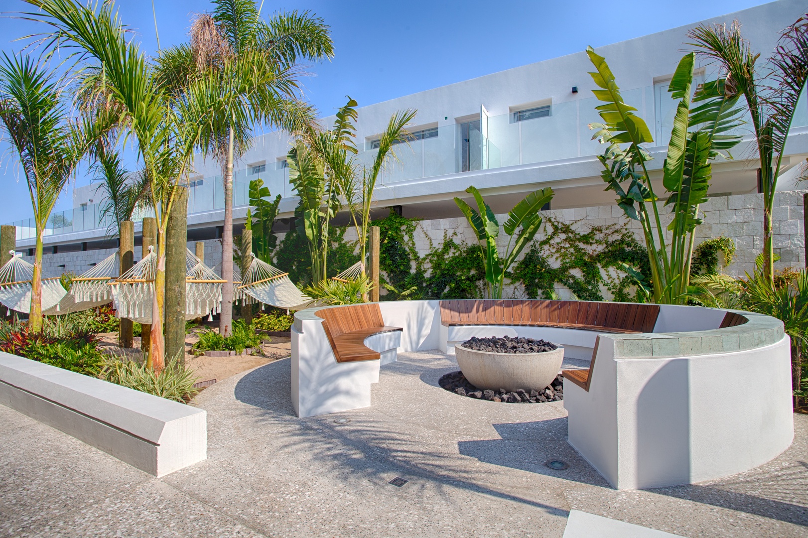 • Rooftop BBQ area, bar, fire pit, and hammocks for lounging