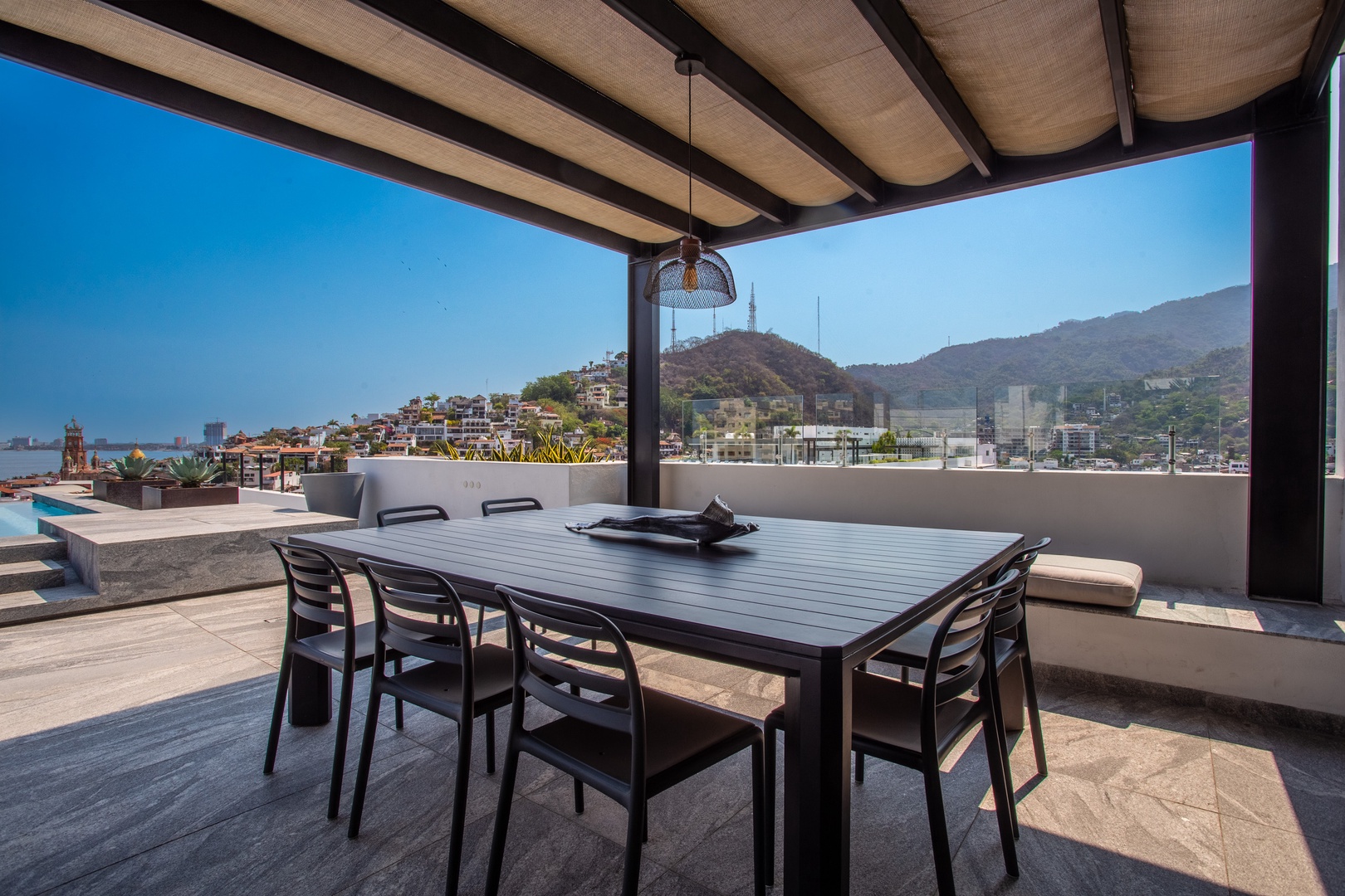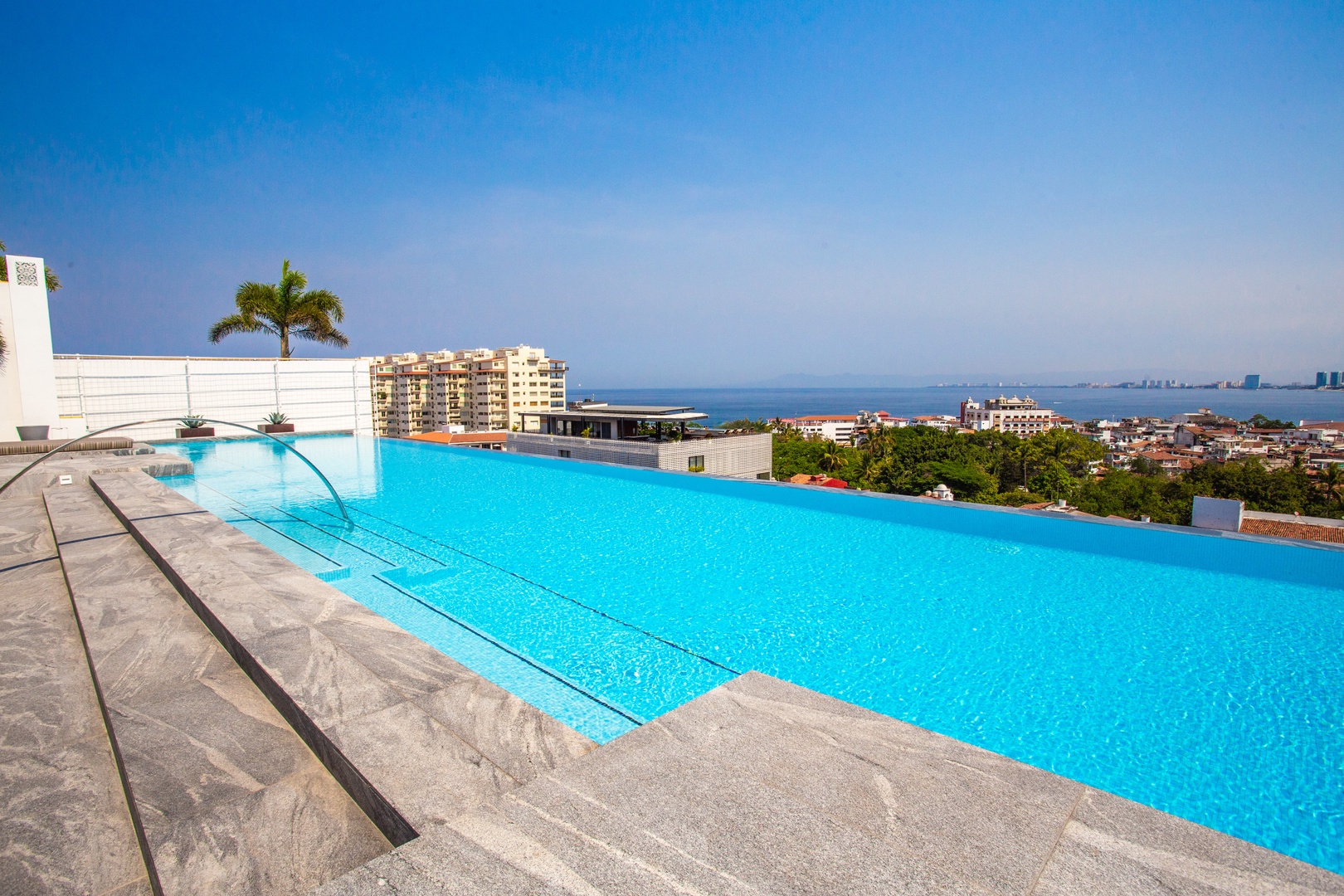 - An infinity rooftop pool with stunning views of the city and mountains