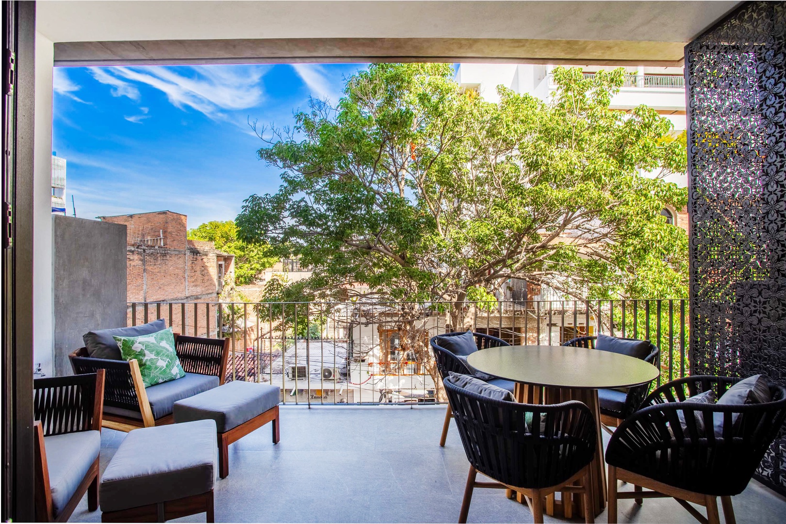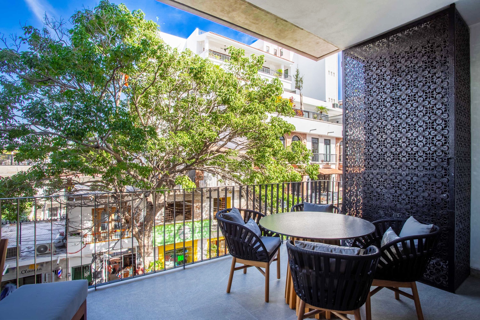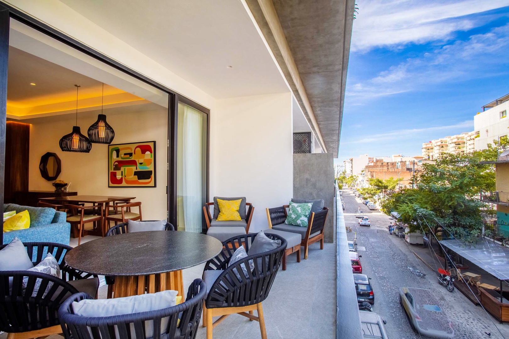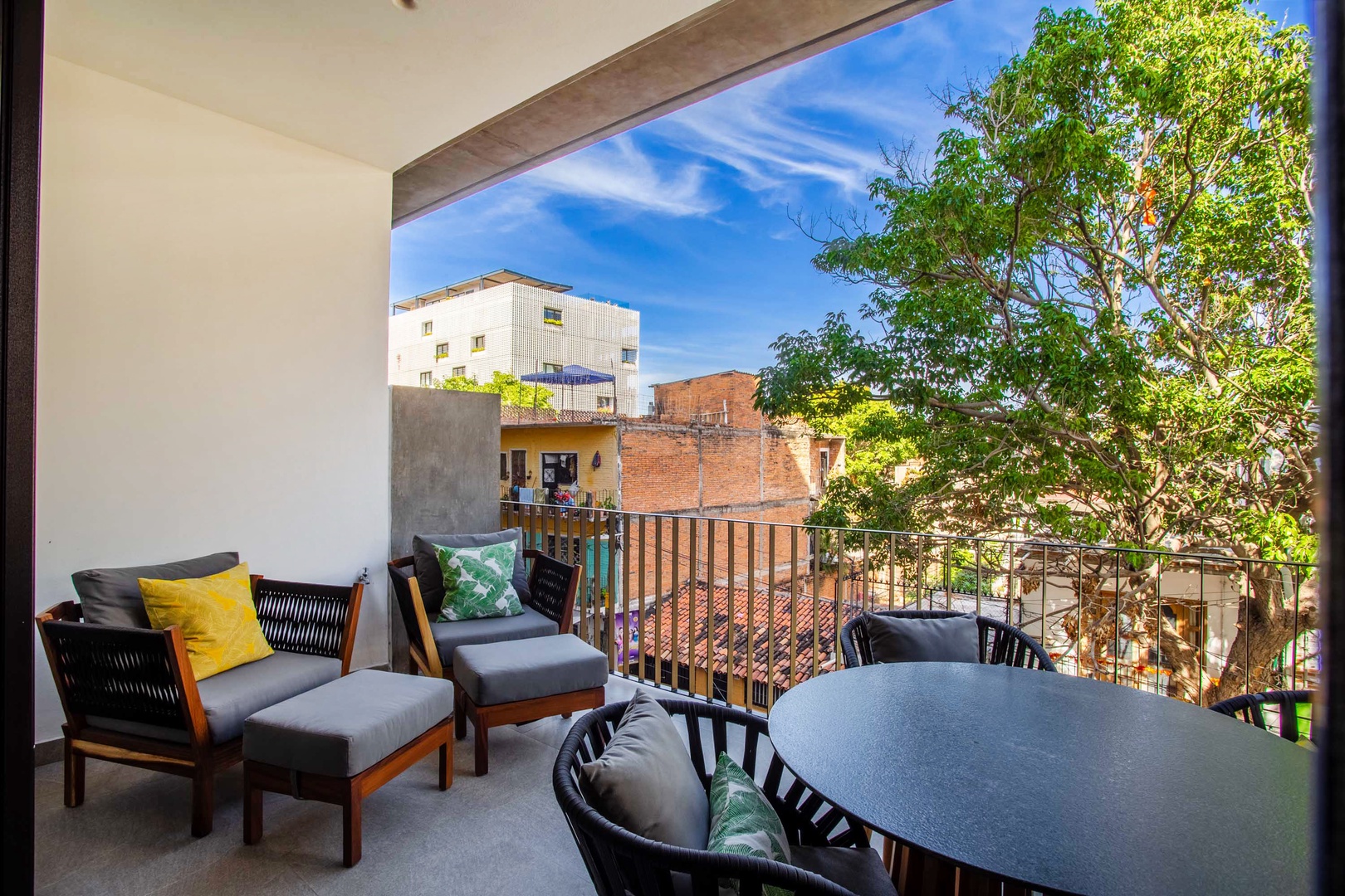 One of the highlights of this condo is the large private balcony, where you can sip your morning coffee while taking in the beautiful views of sunny blue skies and lush greenery. It's the perfect spot to enjoy a leisurely breakfast or unwind with a glass of wine after a day of exploring.