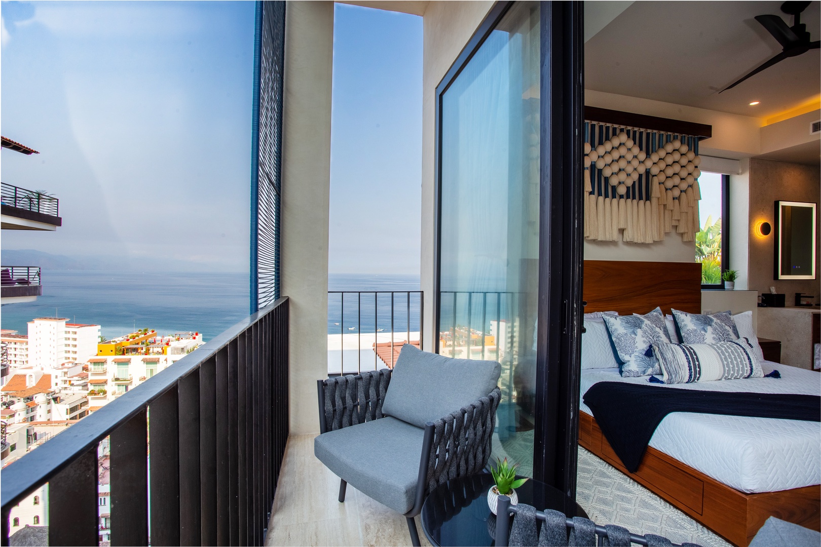 The private balcony offers picturesque views of the charming building across the street and a breathtaking glimpse of the sparkling ocean if you gaze further north. Savor your morning coffee or unwind with a glass of wine while soaking in the delightful vistas.