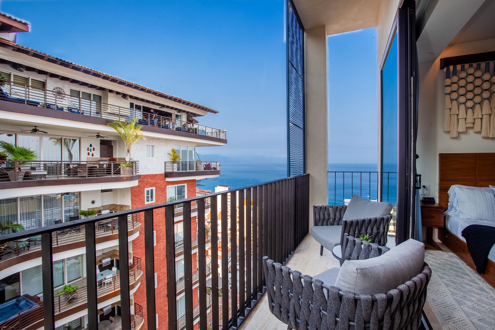 Nomada is a brand-new boutique collection of just 28 homes, ideally situated in the heart of Puerto Vallarta's Romantic Zone. It offers a range of fantastic amenities, including a sparkling infinity pool with 360º ocean views overlooking the Banderas Bay, cabanas/sunbeds, multiple lounge chairs, hammocks, and a BBQ area.