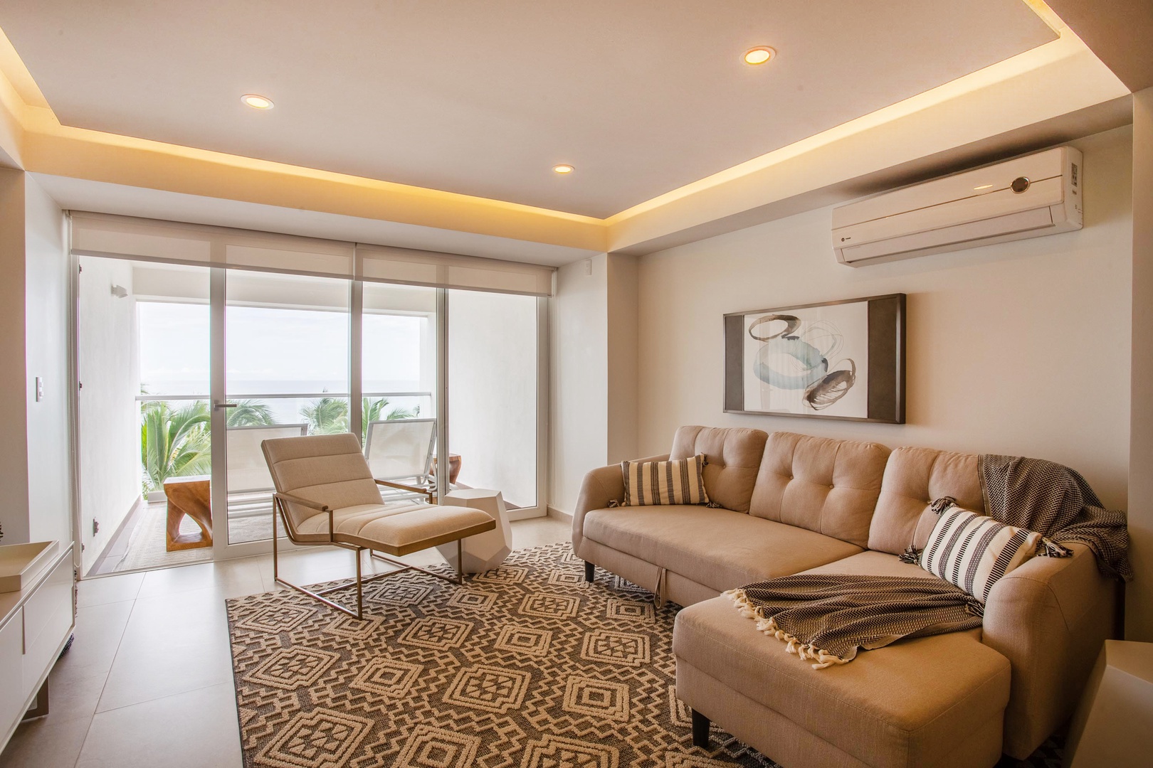 Upon entering this beautiful condo you are greeted with a stunning view of Banderas Bay. The ceiling-to-floor windows and open layout of this 4th-floor condo provide an ample ocean breeze and audible sounds of the waves crashing onto the sand.