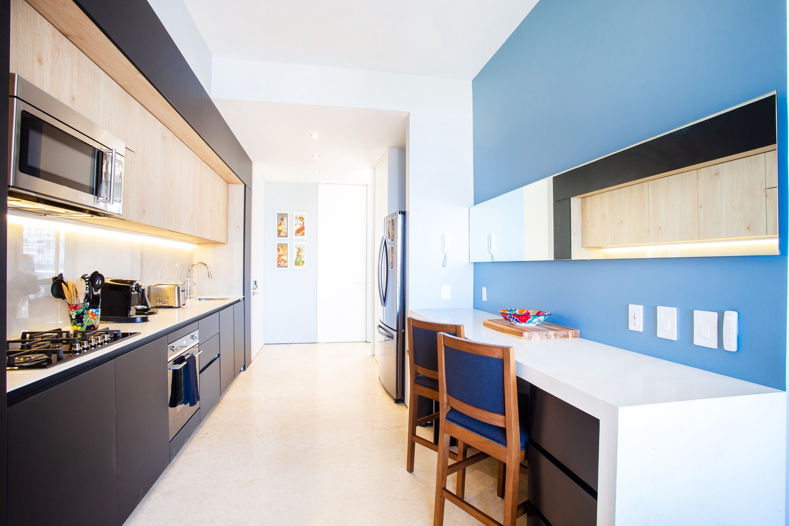 A Nespresso machine is available in the condo; however, capsules are not included.