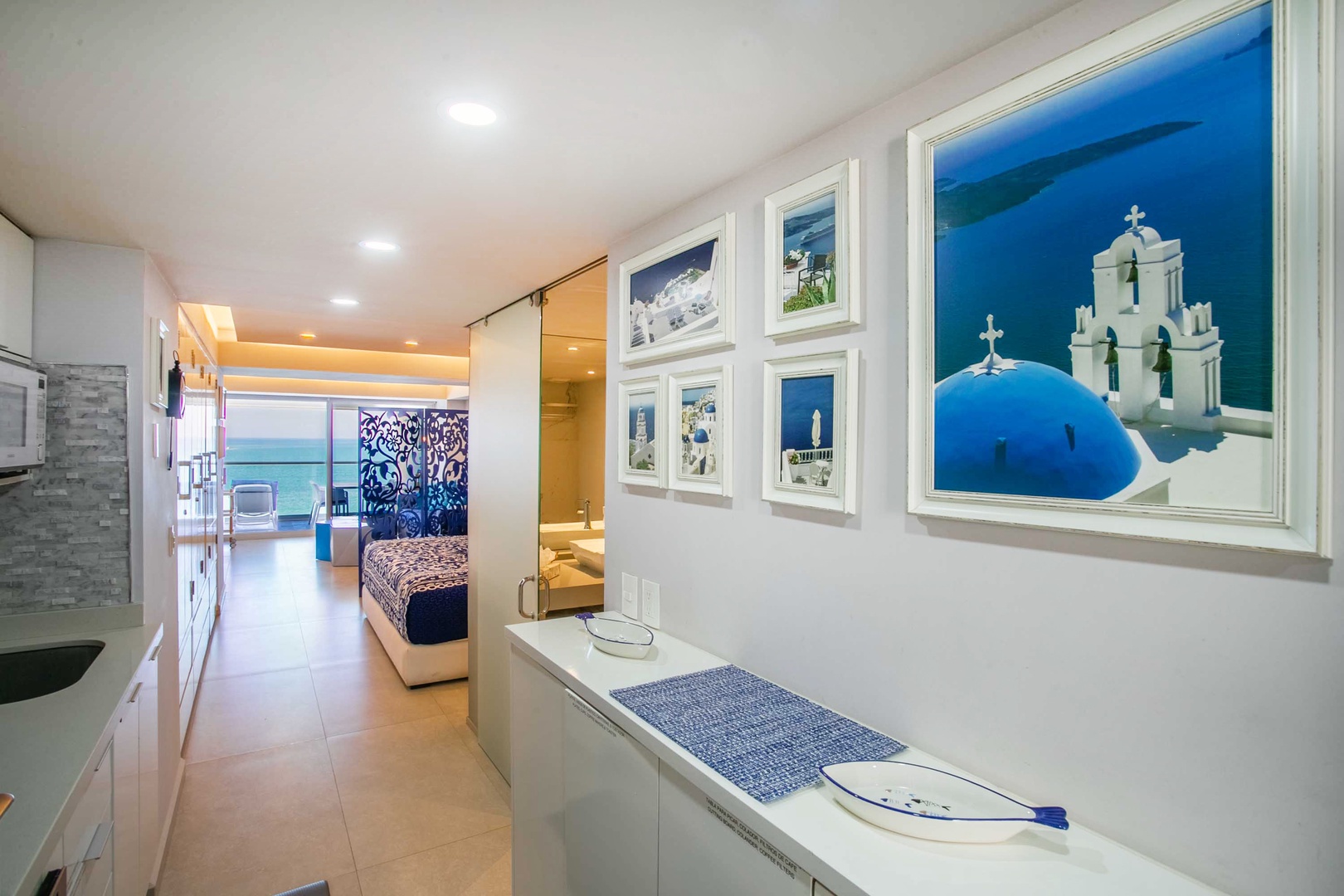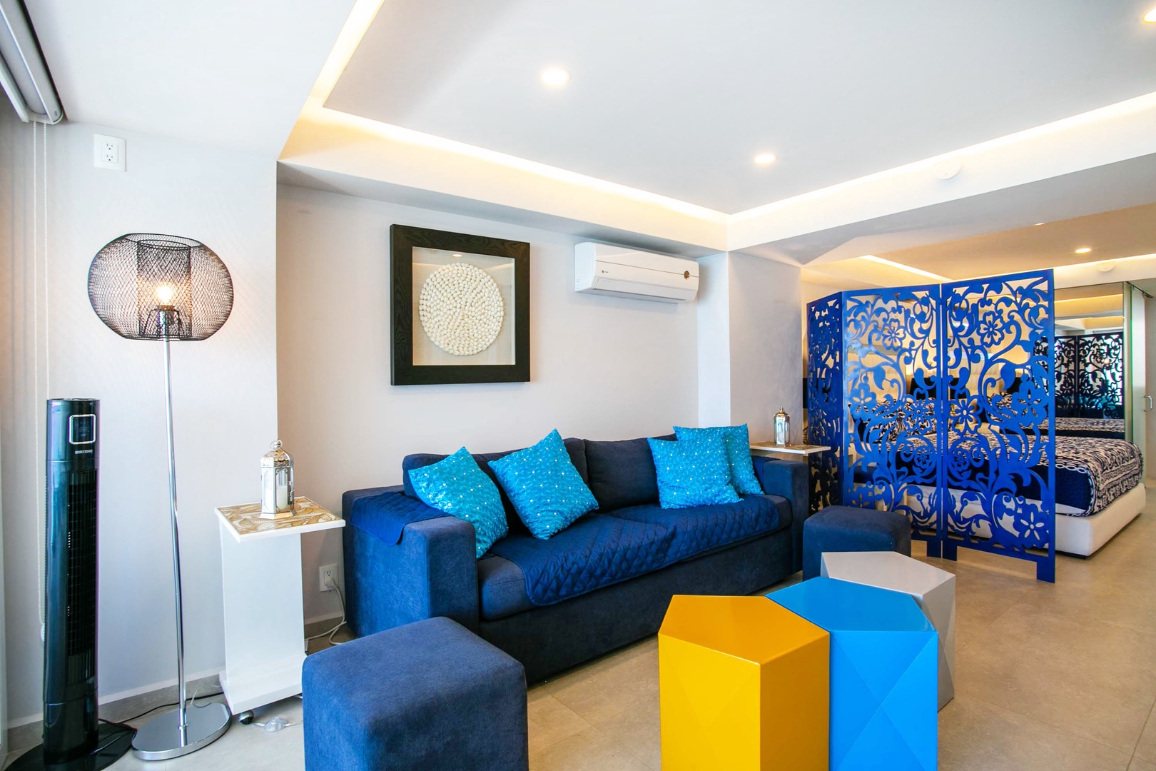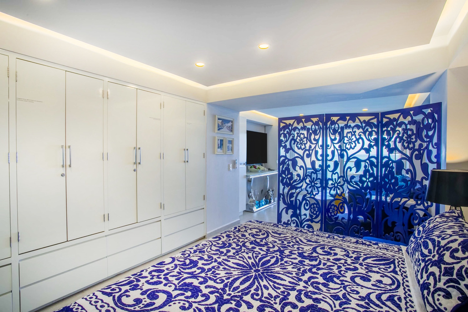 Indulge in the sophisticated ambiance of this studio, where elegant decor adorned with soothing blue tones sets the stage. Enhanced with elements inspired by Greek aesthetics, this condo creates a harmonious blend of modern luxury and timeless charm.