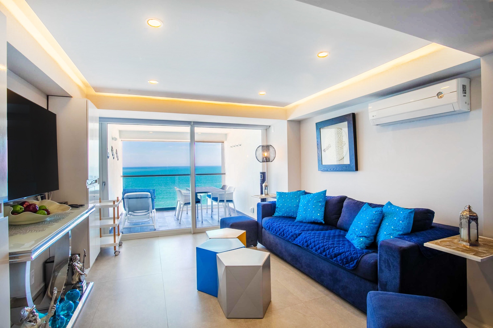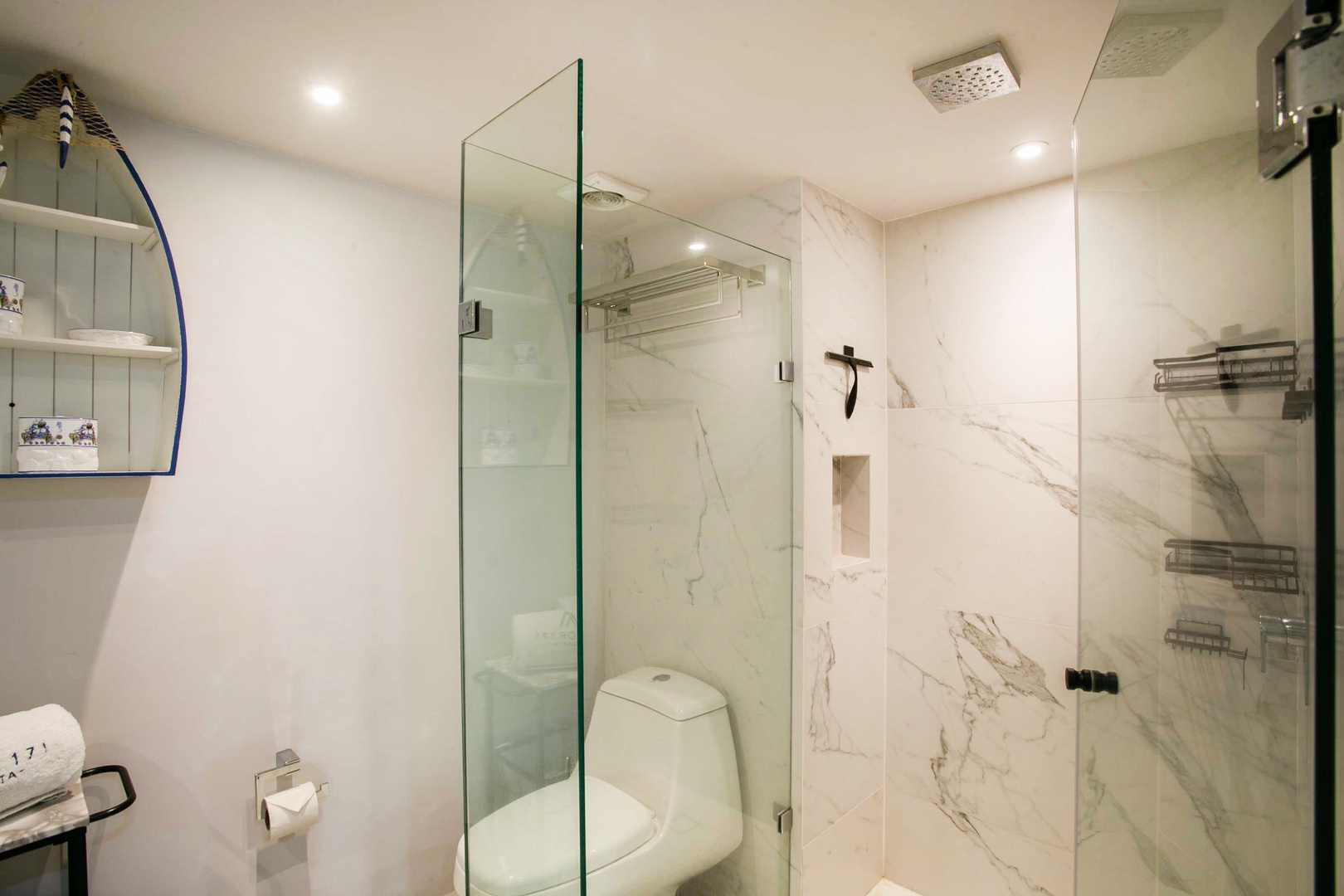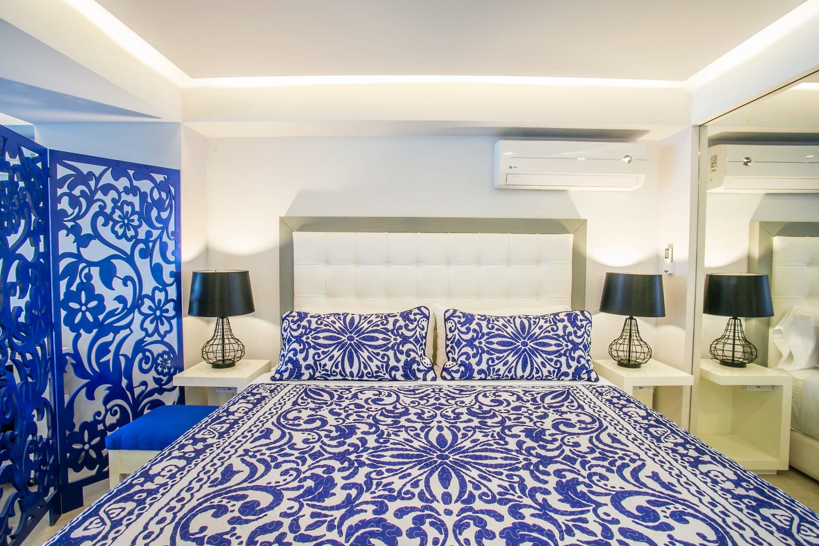 Indulge in the sophisticated ambiance of this studio, where elegant decor adorned with soothing blue tones sets the stage. Enhanced with elements inspired by Greek aesthetics, this condo creates a harmonious blend of modern luxury and timeless charm.