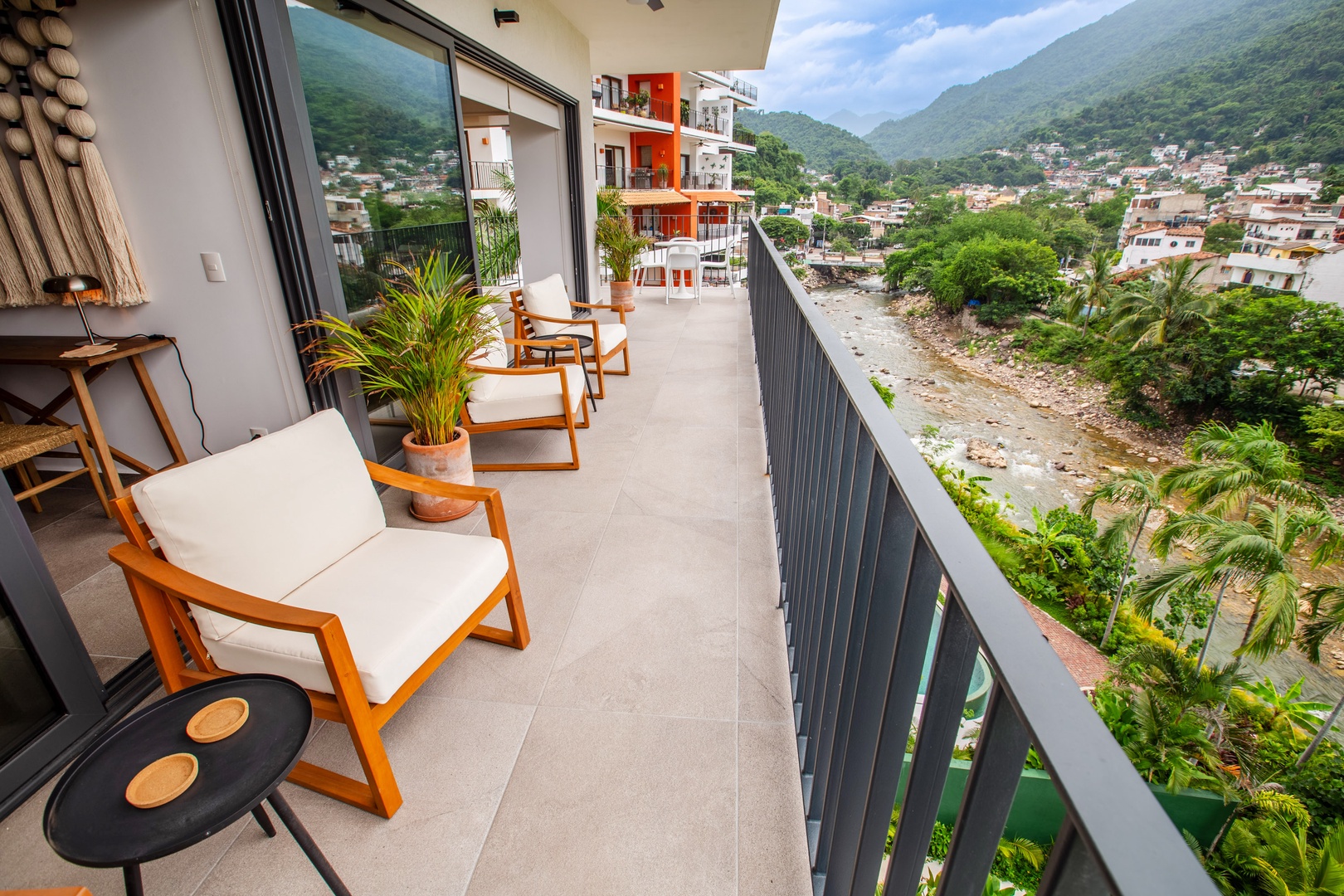 The real highlight is the condo’s wrap-around balcony where you'll be treated to jaw-dropping panoramic views of the tranquil river, lush mountains, and a glimpse of the ocean.