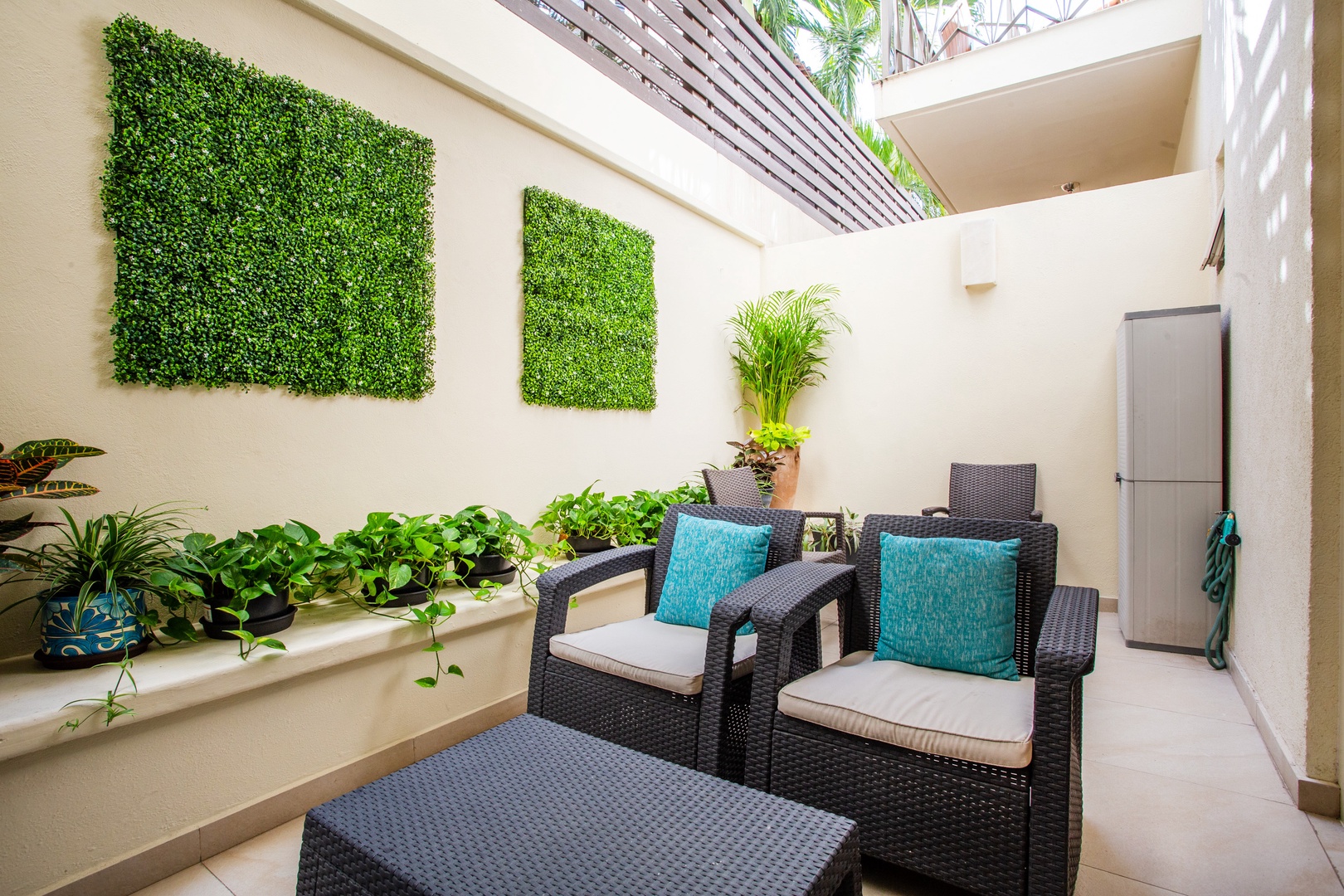 There are plants on the property, and to keep everything looking great, our friendly gardener visits every Tuesdays for about 20 minutes, anytime between 9 a.m. and 1 p.m., to tend to them.