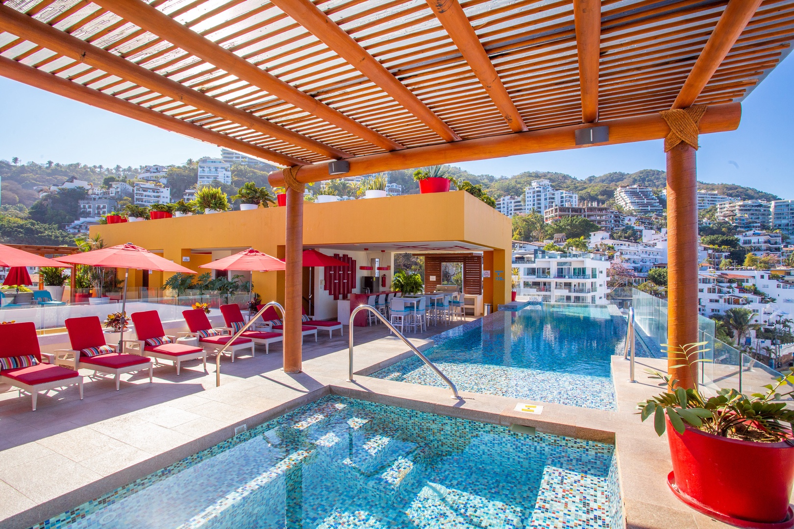 Escape to a serene retreat with this 1 bedroom, 2 bathroom condo in the heart of Puerto Vallarta's Old Town. Enjoy its multiples amenities like a dedicated workspace, a mini-bar, 2 smart TV's and a spacious private patio. Located in the luxury V-177 building, you'll be a few steps from Los Muerto Beach, the boardwalk and the top city's restaurants, and will have access to a heated rooftop pool and jacuzzi with stunning views, a gym and a BBQ, perfect for an unforgettable stay in paradise!