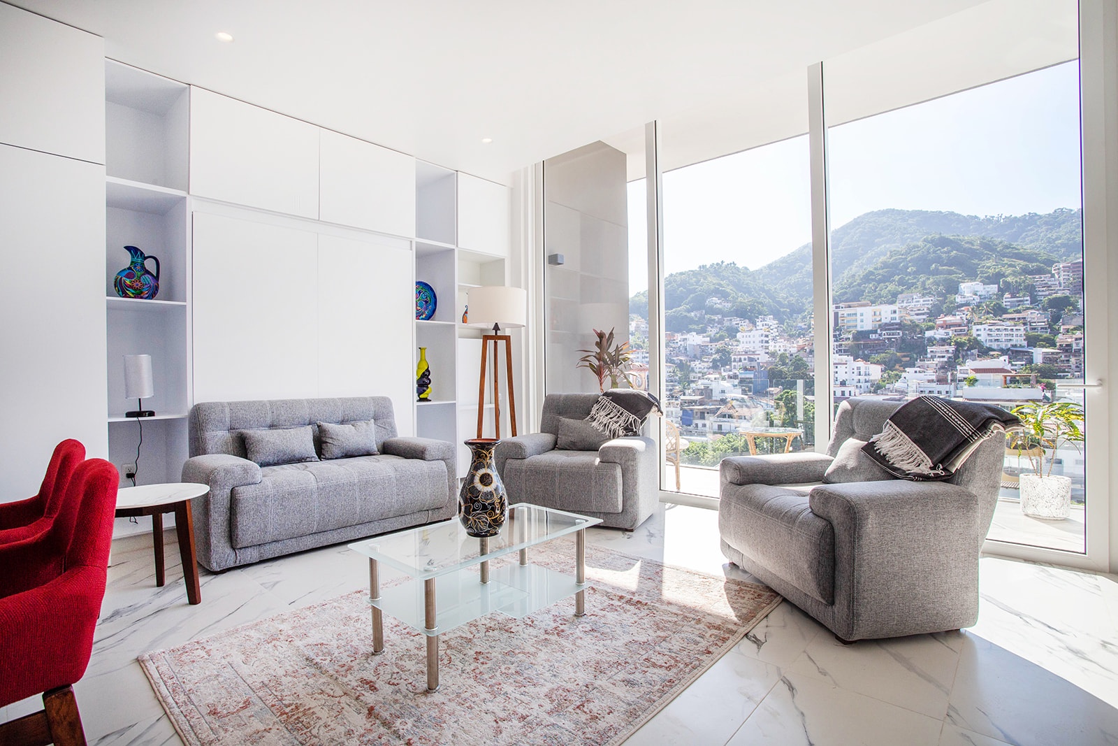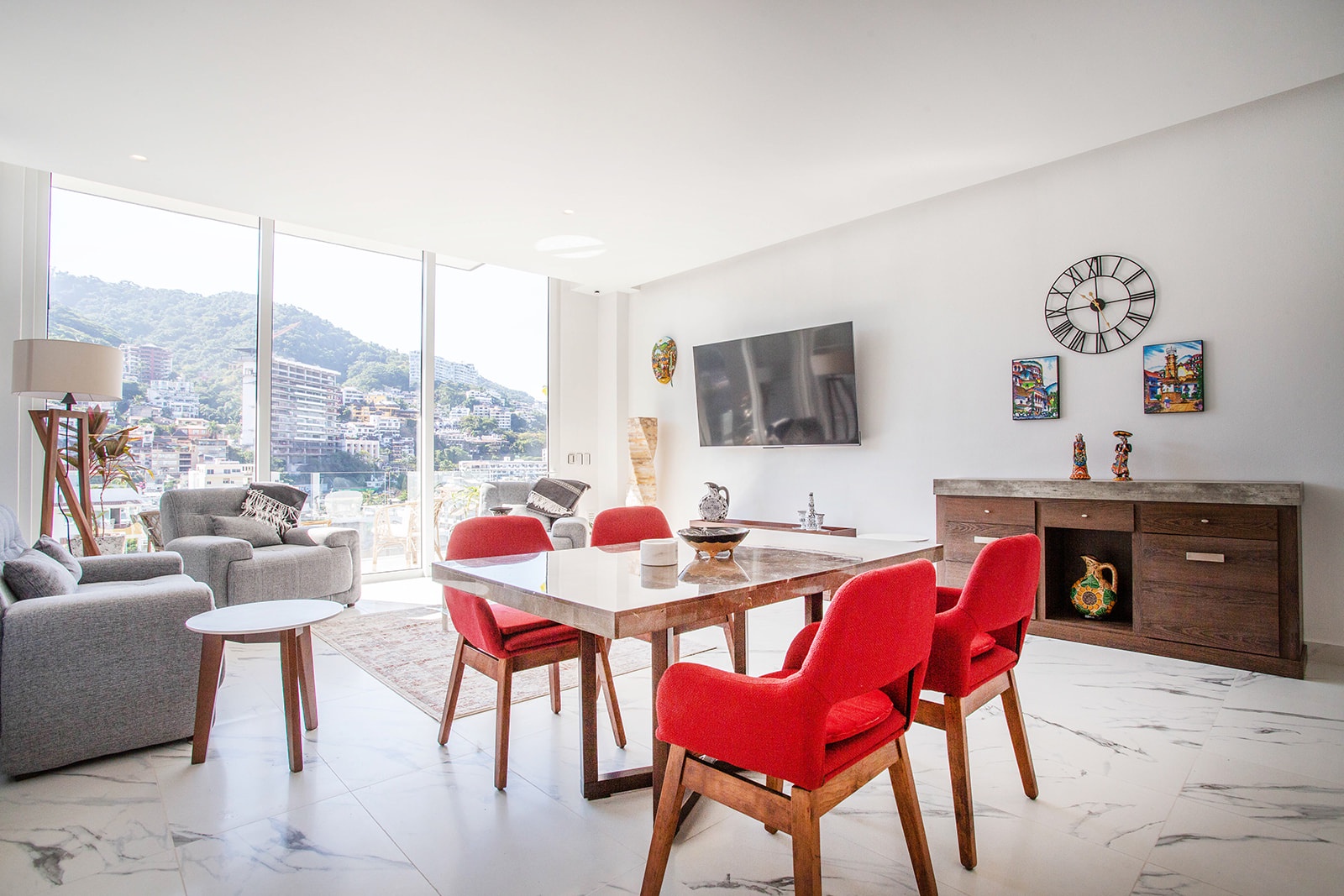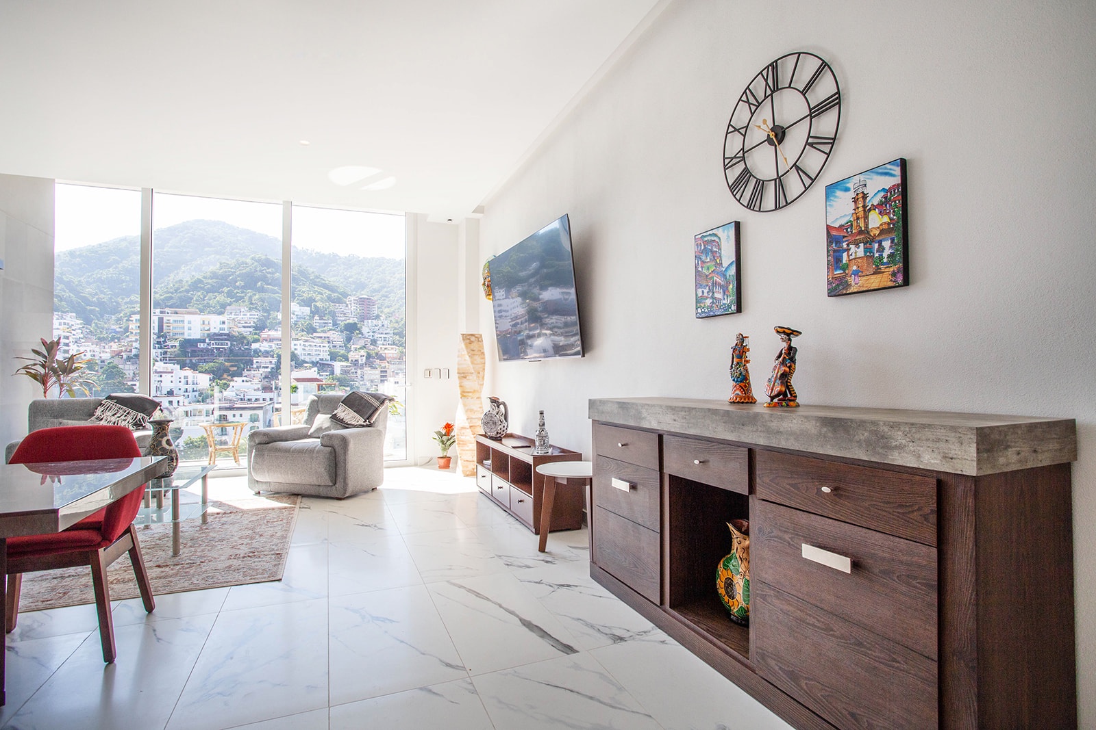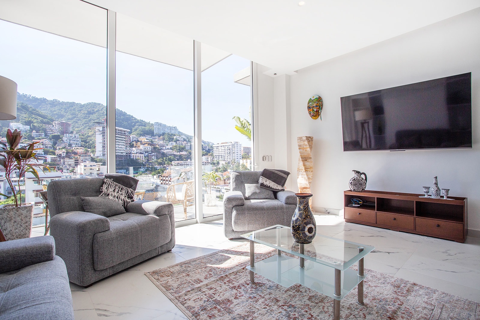 Wake up to dreamy city and mountain views in this stylish 1-bedroom, 2-bathroom penthouse located in Avida Residences, one of the most sought-after buildings in Puerto Vallarta’s Romantic Zone. Walk to Los Muertos Beach, the Malecón, cafés, restaurants, and nightlife — all while enjoying a peaceful, upscale home base.