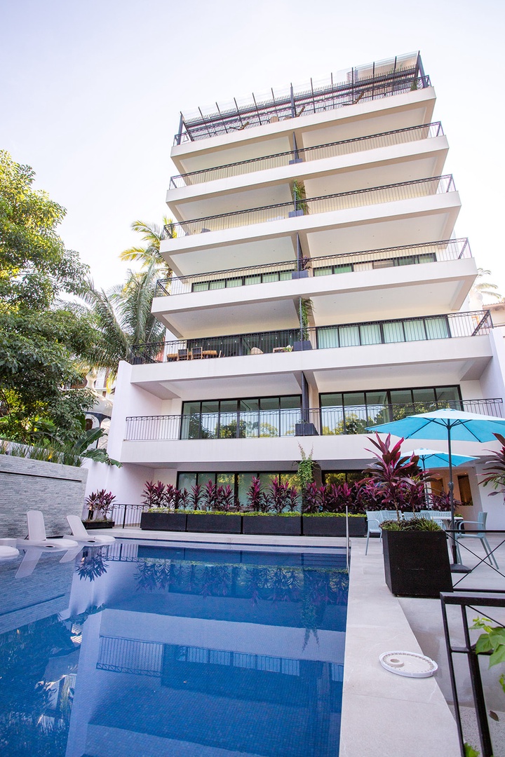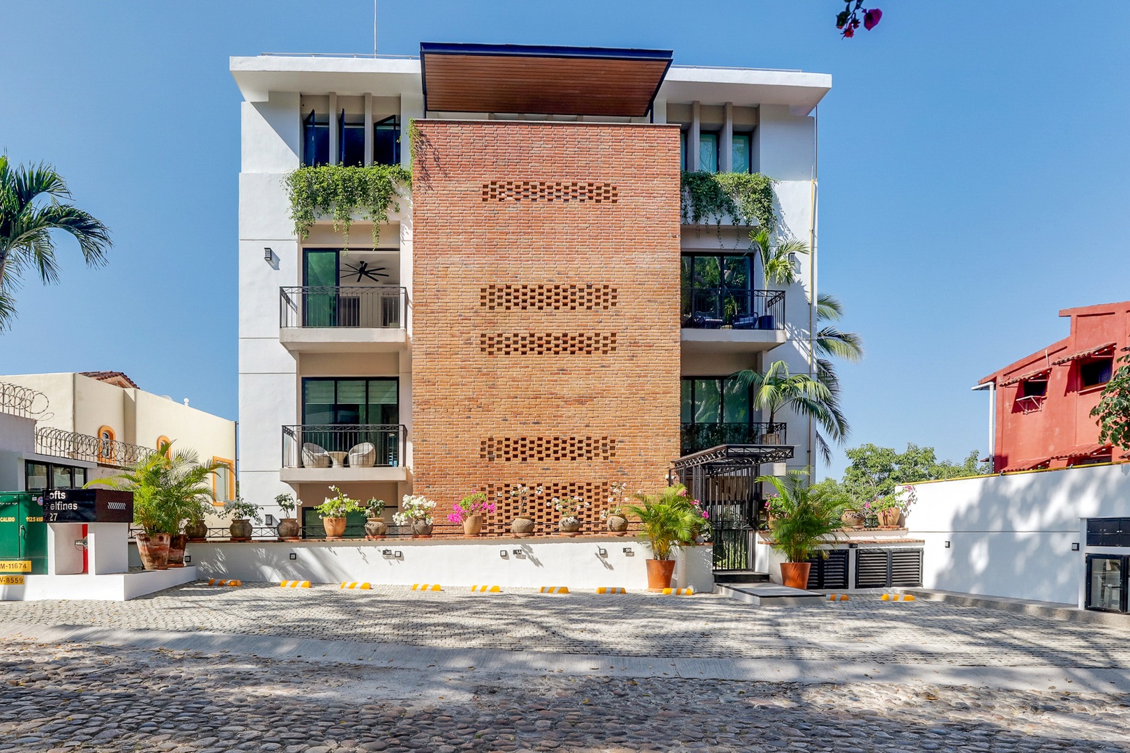 Transportation by taxi, Uber, or bus is ubiquitous, easy, and cheap but if you've got wheels there's secure off-street parking for 1 car. Walking: about 8-10 minutes to the Conchas Chinas beach, 12-15 to Los Muertos beach, and 15-20 minutes to Zona Romantica.