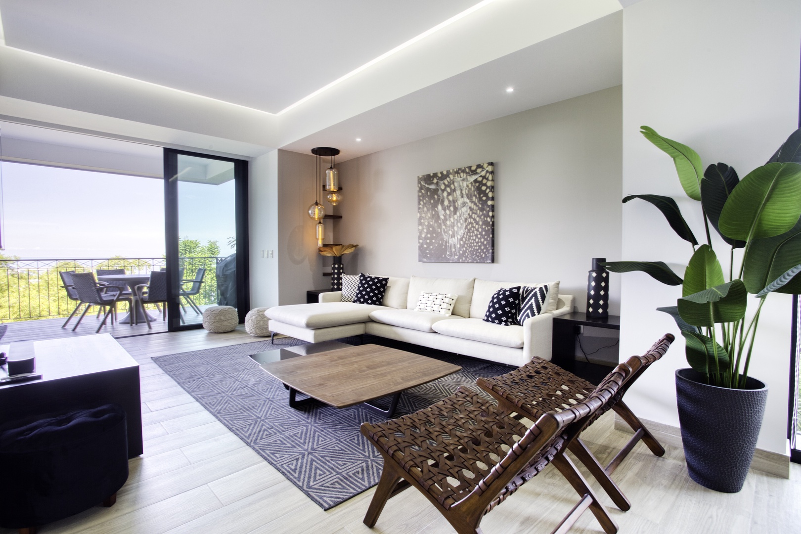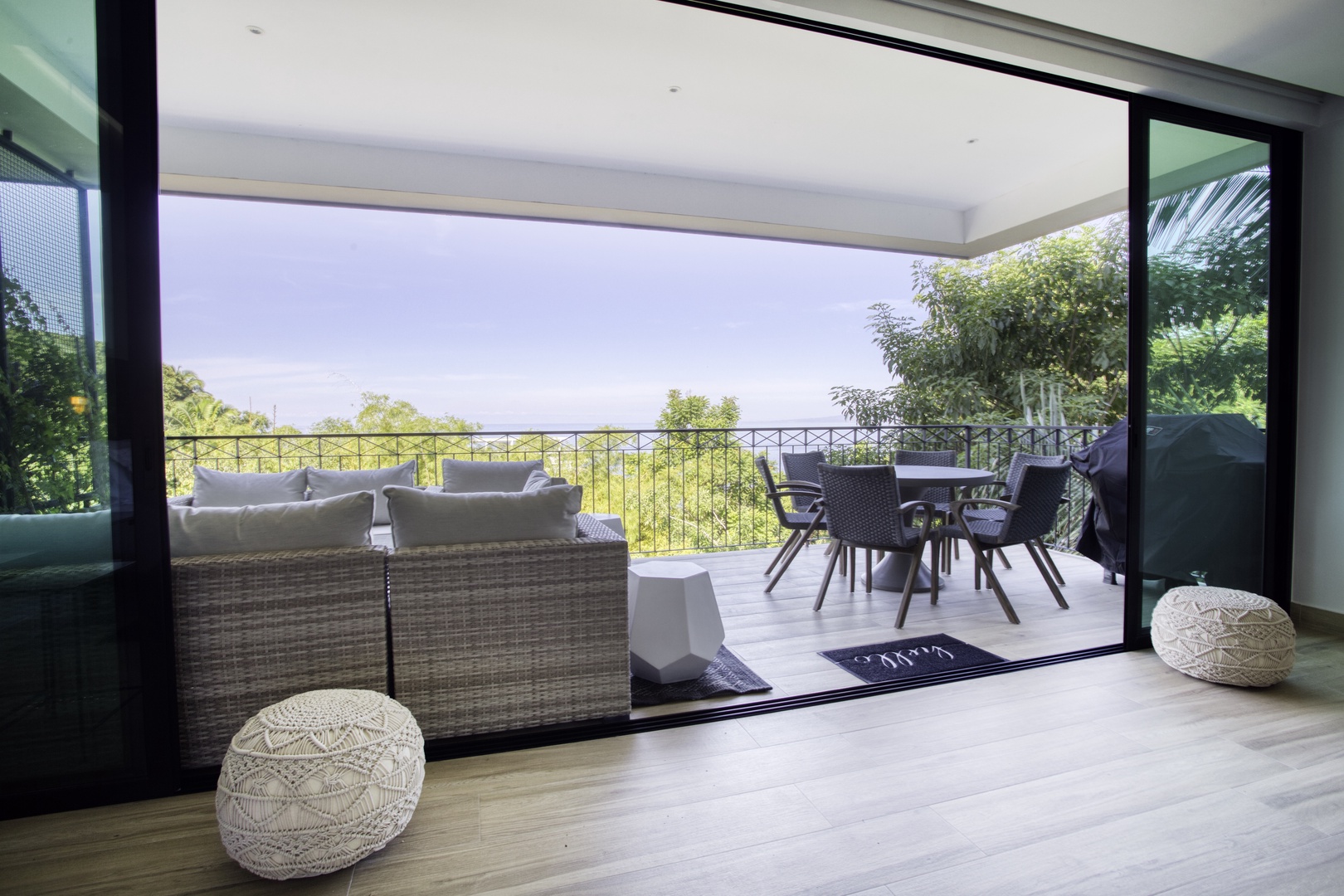 • Floor-to-ceiling glass doors, partial ocean + mountain views