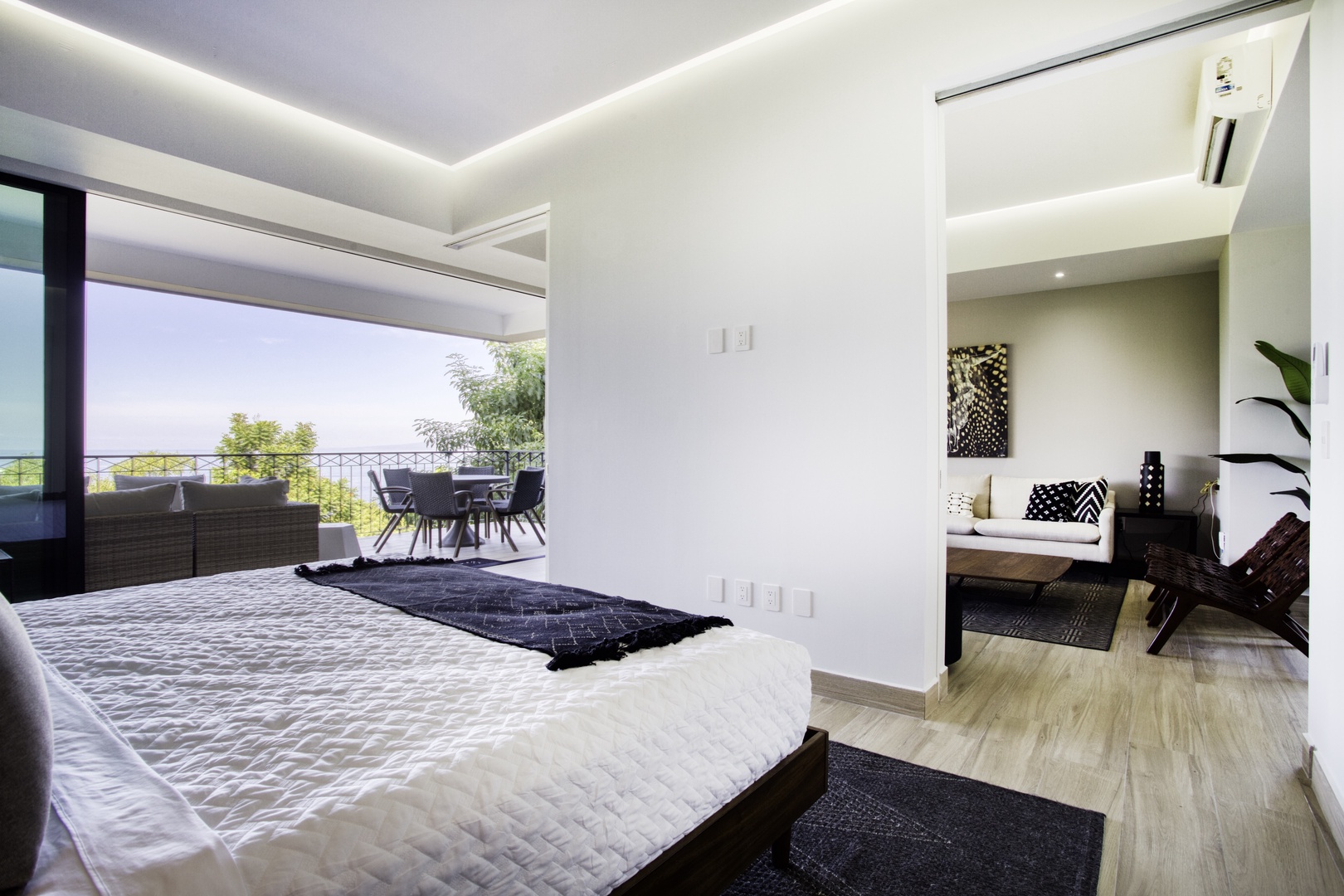 • Master suite opens to balcony with jungle and partial ocean views