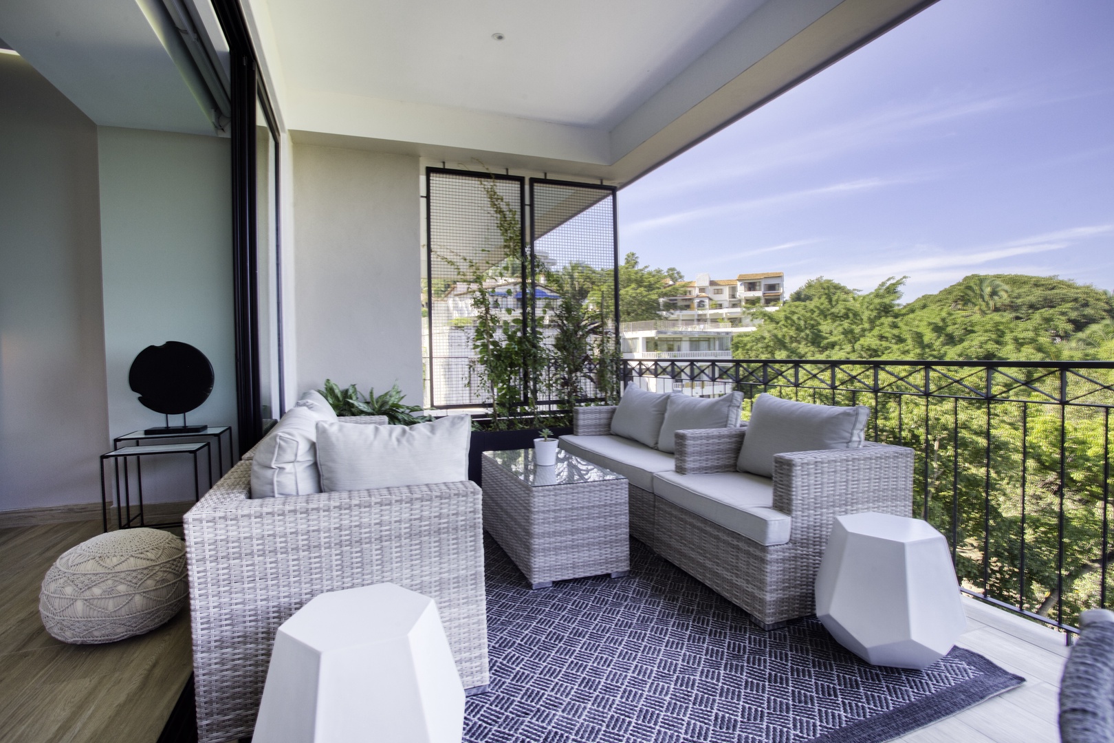 • Expansive private balcony w/ grill + lounge seating