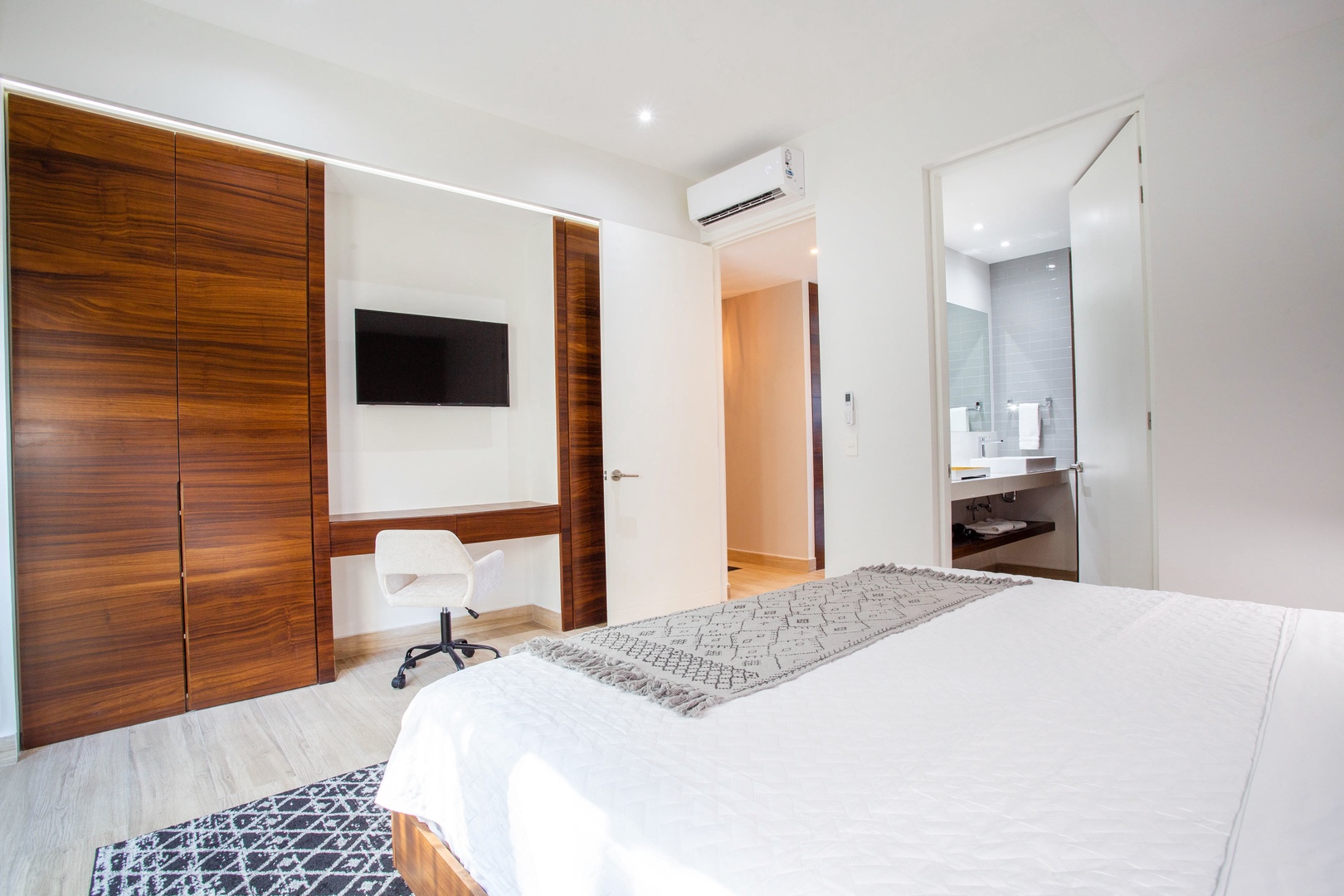 • In-unit washer/dryer, work desk, fast Wi-Fi