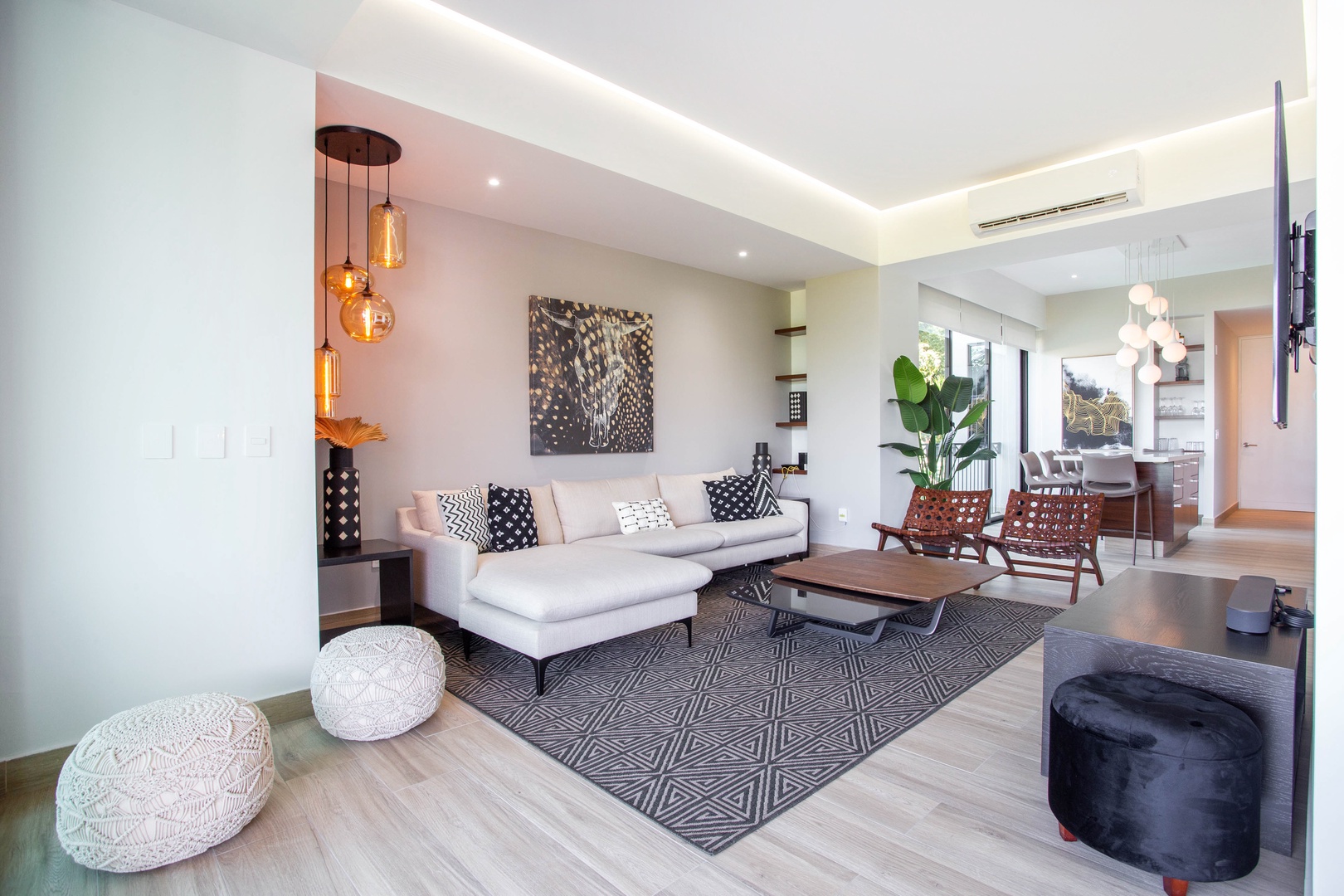 • Smart TV with sound bar for immersive entertainment